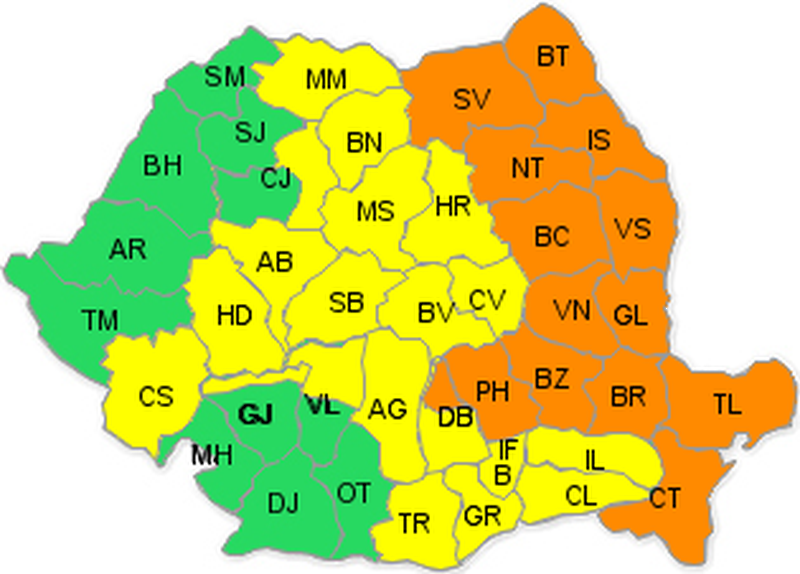 Avertizarea cod portocaliu a fost emisa de Administratia Nationala de Meteorologie pentru judetele Suceava, Botosani, Neamt, Iasi, Bacau, Vaslui, Vrancea, Galati, Braila, Buzau, Prahova, Constanta, Tulcea si zona de munte a judetului Dambovita si este valabila de marti, ora 18.00, pana miercuri, la ora 20.00.