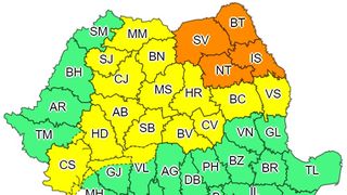 2 din 2 | Jumătate din țară se află sub avertizare de vreme rea. Codul portocaliu este valabil pentru 4 județe din nord-estul țării, iar Codul galben de ploi afectează 16 județe din Transilvania și Moldova.
