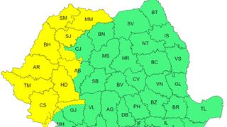 Administraţia Naţională de Meteorologie (ANM) a emis o atenţionare cod galben de instabilitate atmosferică, averse însemnate cantitativ, valabilă de sâmbătă, de la ora 18.00, până duminică, la ora 10.00, în judeţele Satu Mare, Maramureş, Sălaj, Bihor, Arad, Timiş, Caraş-Severin, Hunedoara şi în unele zone ale judeţelor Mehedinţi, Gorj, Alba şi Cluj.