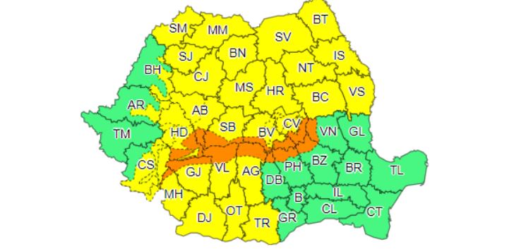 Meteorologii au actualizat, miercuri, informarea de vreme rea pentru următoarele zile.