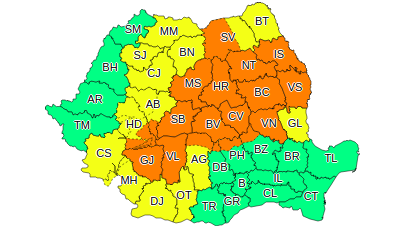 Administrația Națională de Meteorologie a emis o atenţionare Cod Portocaliu şi una Cod Galben de instabilitate atmosferică temporar accentuată.