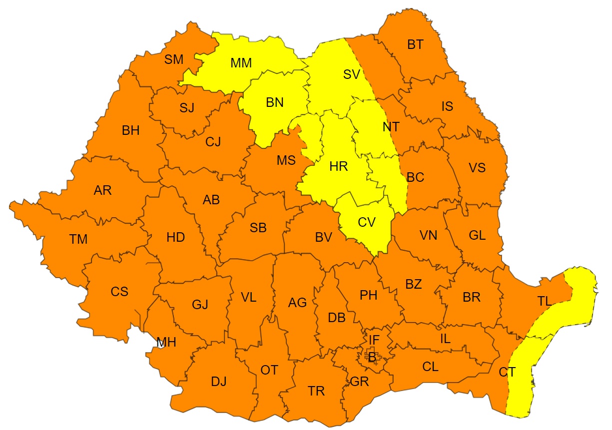 3 din 4 | Codul portocaliu se extinde vineri, 12 iulie