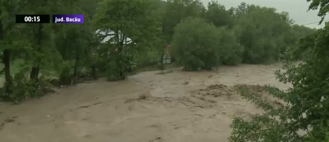 ATENŢIONARE ANM: Cod galben şi cod portocaliu de ploi însemnate cantitativ şi inundaţii. Cod roşu de inundaţii pe afluenţii râului Trotuş din judeţele Bacău şi Covasna. Doua persoane si-au pierdut viata dupa ce au fost luate de viituri.
