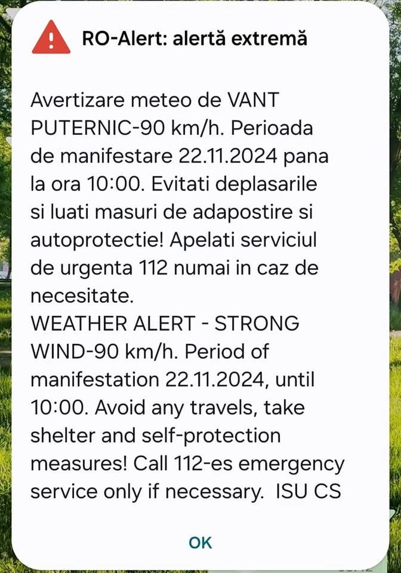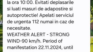 Atragem atenția că în continuare este în vigoare un COD PORTOCALIU de vânt puternic până la ora 17:00.