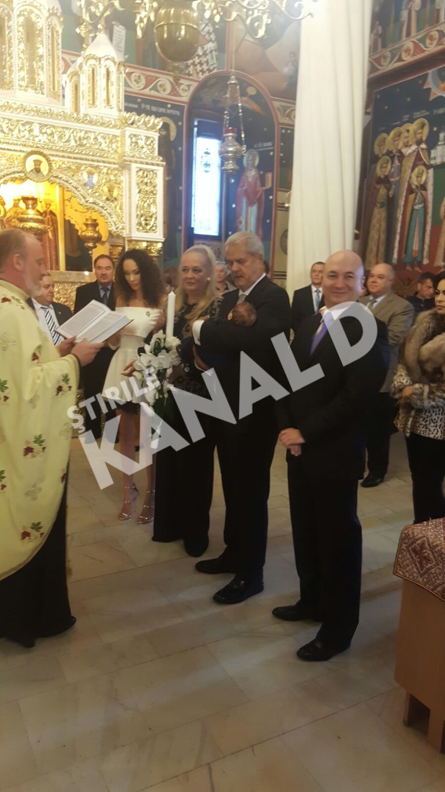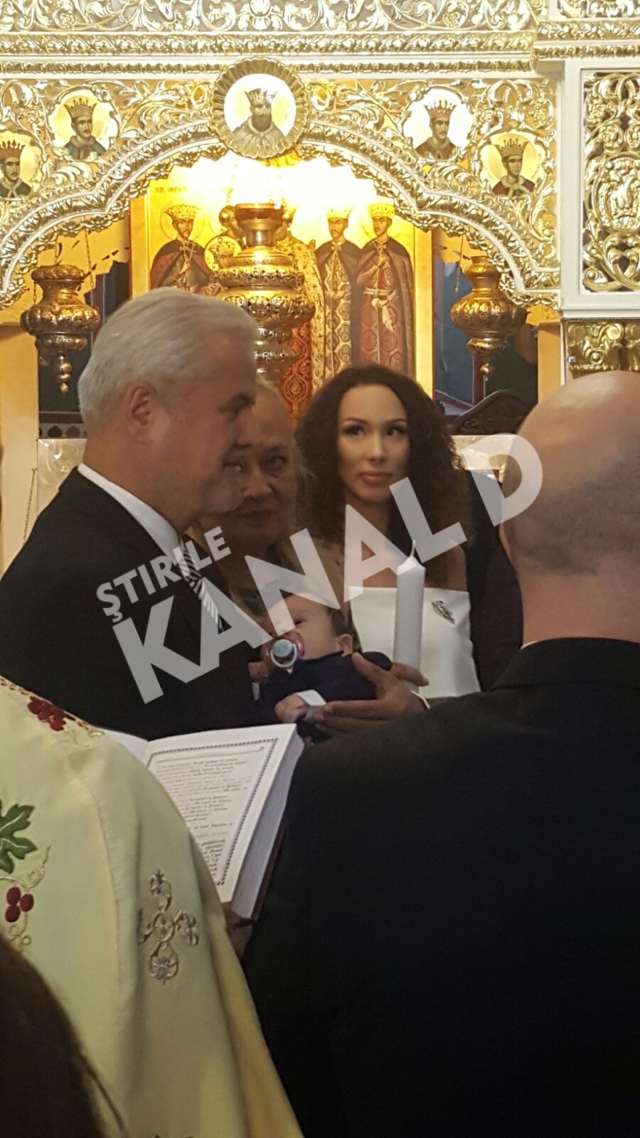 Ceremonia religioasa s-a tinut, in urma cu putin timp, la Biserica Sf. Gheorghe cel Nou, iar nasii micutului au fost nimeni altii decat sotii Dana si Adrian Nastase.