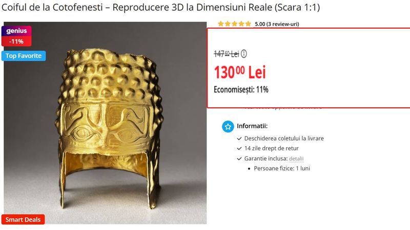 Într-o vreme în care putem comanda aproape orice cu un click, de la semințe de tomate japoneze până la roci „de colecție”, nu e de mirare că a venit și rândul coifului getic să devină „livrabil”.