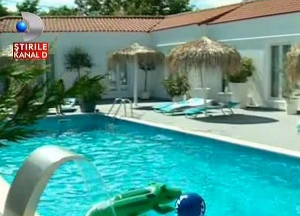 Piscina cocheta este si ea, facuta cu gandul la Mediterana, iar copiii sunt in culmea fericirii.