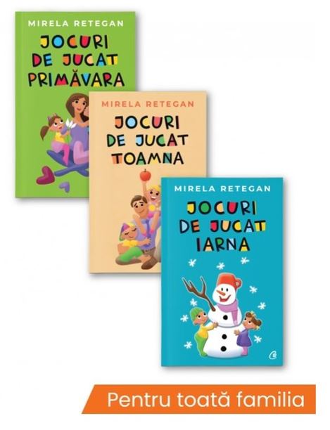 Prima recomandare este un Pachet Jocuri de Jucat, Set 3 carti, de Mirela Retegan. Este format din cartile Jocuri de jucat primăvara, Jocuri de Jucat Toamna si Jocuri de Jucat iarna si este ideal pentru perioada aceasta, in care vrei sa ii oferi copilului cele mai bune metode prin care sa nu se plictiseasca.