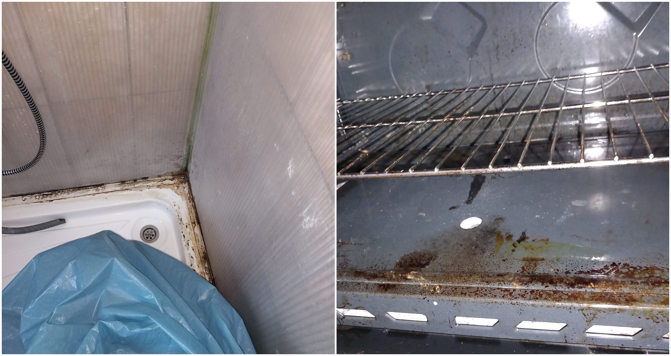 - - lipsa igienei și a dotărilor din spațiile de cazare (băi neigienizate, fără dotări corespunzătoare, lipsa capacelor și colacelor de WC, căzile cabinelor de duș cu rugină și mucegai, pereți deteriorați)