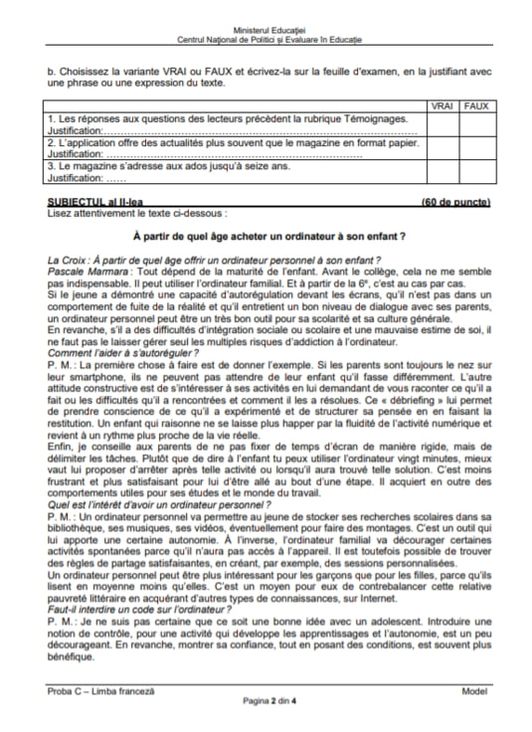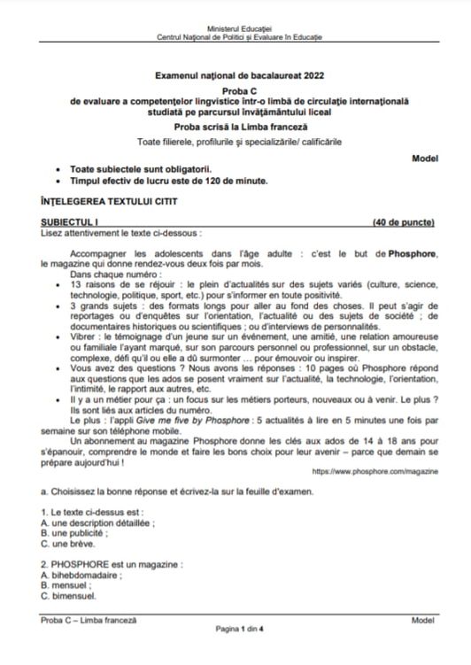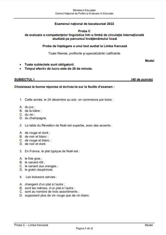4 din 8 | Competenţe Franceză BAC 2022: Cum arată subiectele?