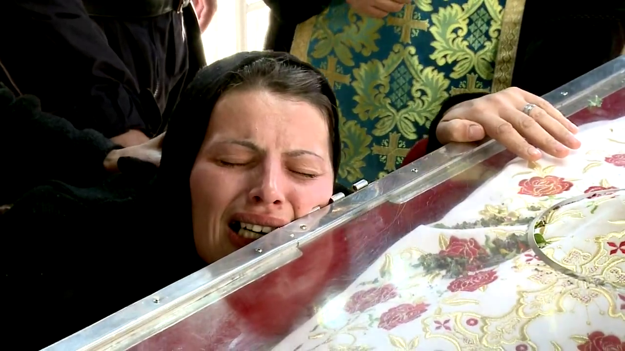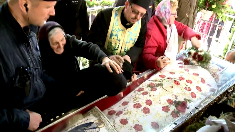 Femeia urla ca o posedata, era escortata de mana de catre jandarmi si nu s-a potolit nici cand a ajuns in apropierea raclei in care se aflau moastele. Femeia s-a calmat putin intr-un final, dar, dupa ce s-a rugat langa racla cu moaste, a fost dusa la Salvare. "Nu vreau la salvare, unde ma duceti? Vreau la Cuvioasa", au fost cuvintele prin care ea a incercat sa ii emotioneze pe oamenii legii.