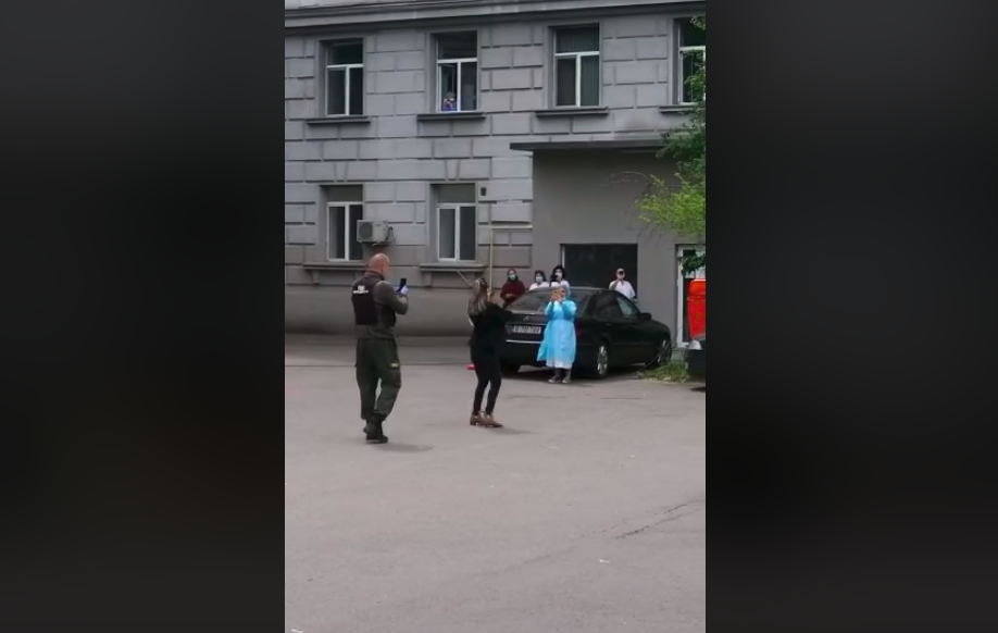 Sâmbătă, în curtea Spitalului Fundeni, o artistă violonistă, a cântat pentru pacienții spitalului.