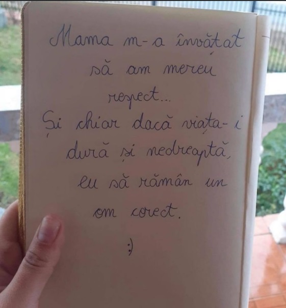 " Mama m-a învățat să am mereu respect. Și chiar dacă viața e crudă și nedreaptă, eu să rămân un om corect",
