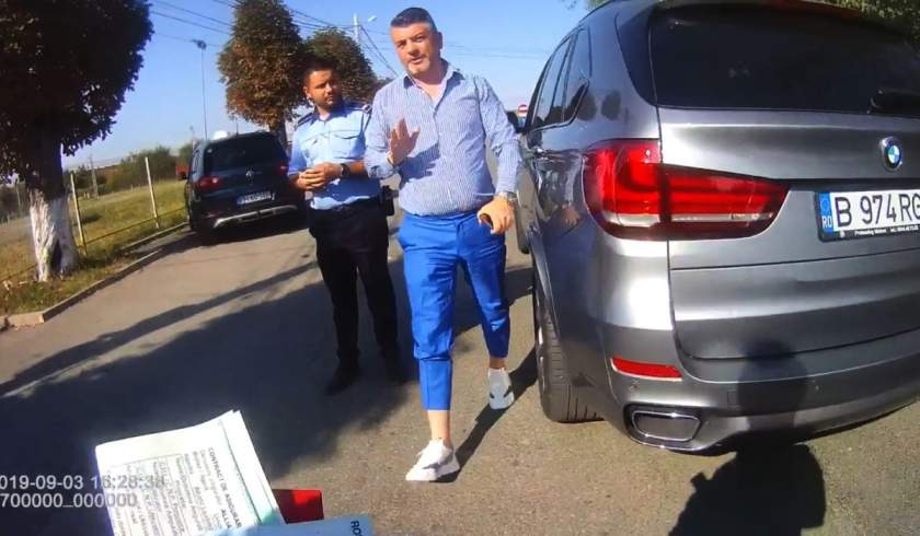 'Hai să îţi arăt eu ceva. Nu cred că vrei să intri în conflict cu mine. Ia colea! Nu cred că vrei să intri în conflict cu mine. Încerci cu mine d-astea? Dă-mi amendă, fă ce vrei tu. Încerci cu mine d-astea? Jur! Fă ce vrei tu, dă-mi amendă. Hai că îţi arăt eu ţie. Aştept pe unul să-mi bage gazele în**** mea', a