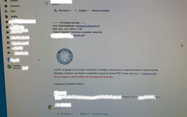 ANAF îi avertizează pe contribuabili că nu se trimit astfel de mesaje.