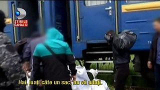 "Hai, luati cate un sac, nu va uitati. Nu le-ati adus voi? Cate un sac, asa. La spinare cu el."