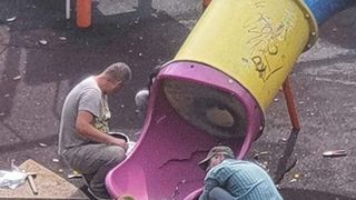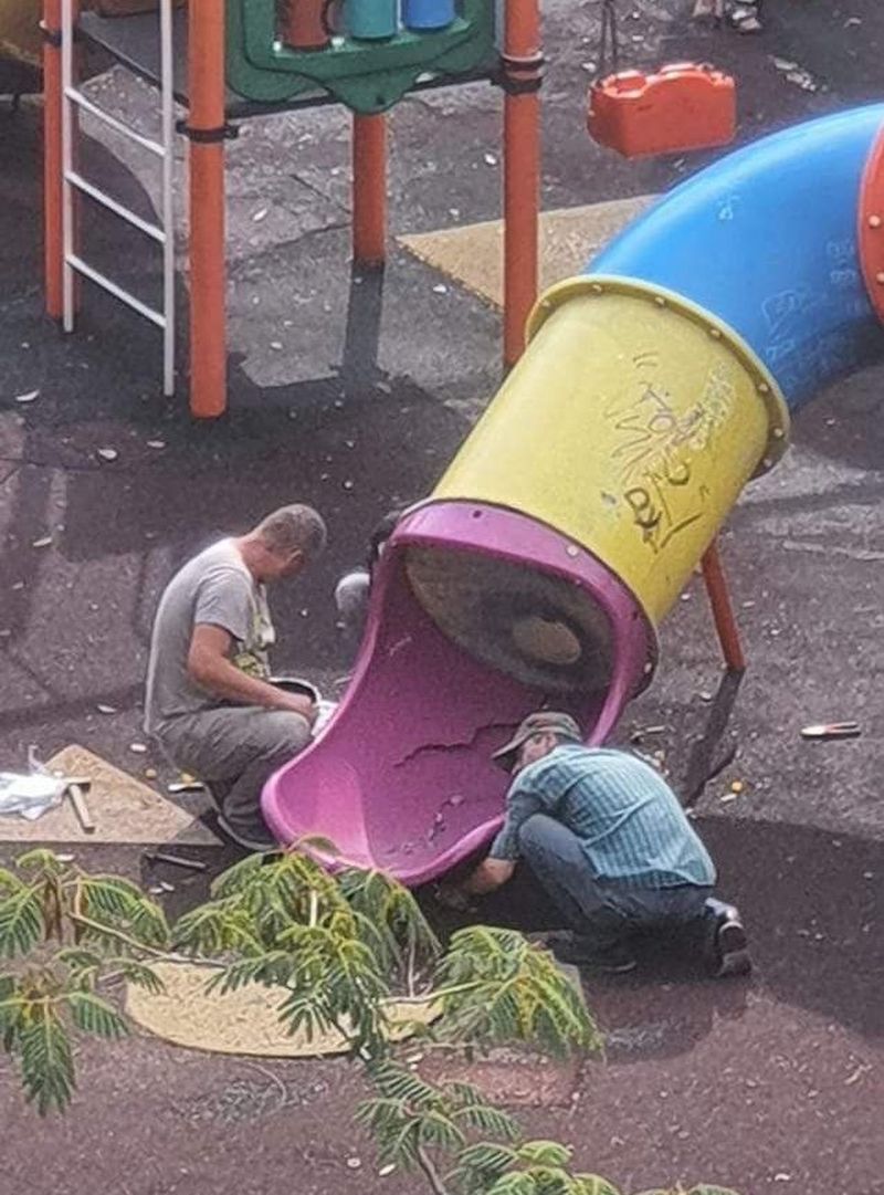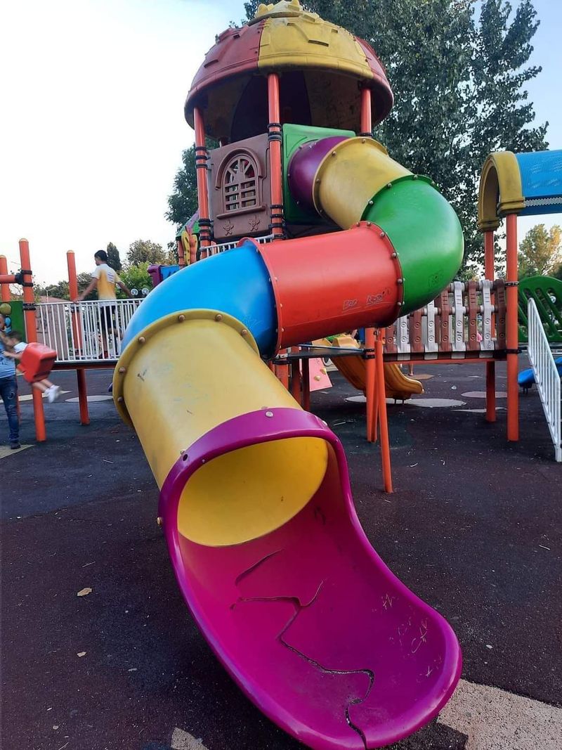 Luni, doi copii, în vârstă de 11 şi 12 ani, au rămas blocaţi într-un tobogan care avea ieşirea obturată, în parcul Mihai Viteazul din municipiul Giurgiu. Ieșirea toboganului era astupată de un placaj.