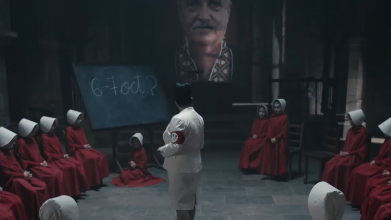 In spot, apar fetite imbracate cu pelerine lungi, rosii si poarta palarii albe, la fel cum sunt imbracate servitoarele in serialul „The Handmaid’s Tale” („Povestea slujitoarei”), preluat in Romania de HBO. Serialul, care are la baza romanul omonim al autoarei Margaret Atwood, prezinta viata dintr-un stat condus de un regim totalitar, ultra-religios, care doreste a reveni la valorile traditionale si care trateaza femeile ca pe o proprietate a lui.