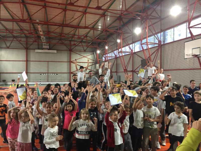 Fosti concurenti ai reality-ului care a cucerit milioane de romani s-au aflat astazi in mijlocul copiilor de la Scoala nr 45 Titu Maiorescu, din Bucuresti, in sala de sport, si le-au fost alaturi pe trasee care le-au testat acestora viteza, echilibrul, indemanarea, puterea de concentrare si, nu in ultimul rand, adaptarea in mijlocul echipei.