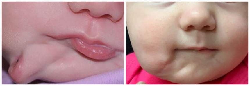 Medicii au observat totul în timpul unei radiografii pe care i-au făcut mamei în al treilea trimestru de sarcină, însă nu au realizat pe moment că va fi un lucru atât de grav. Cele două guri ale micuței nu comunicau între ele, una dintre ele fiind plasată aproape de bărbie.