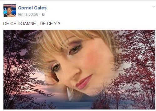 Cornel Gales a postat o fotografie pe Facebook, in care apare Ileana Ciuculete, iar mesajul pe care l-a scris este emotionant." De ce, Doamne, de ce?", a postat barbatul.