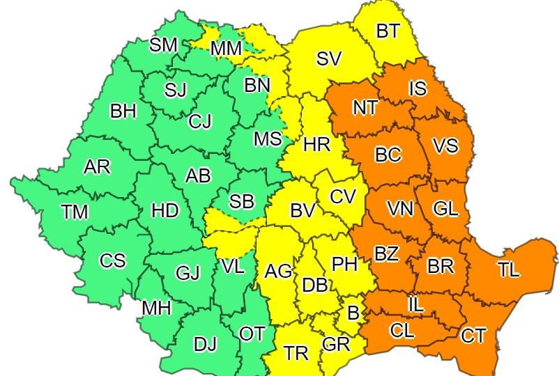 Administrația Națională de Meteorologie (ANM) aduce vești proaste. După săptămâni întregi de ploi, meteorologii anunță două zile de cod galben și portocaliu pentru jumătatea de Est a țării.