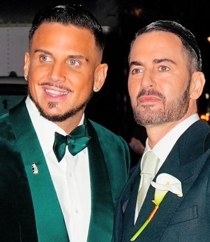 Jacobs a anunţat evenimentul pe Instagram. Designerul a publicat o fotografie cu un pinguin cu diamante şi onyx ataşat la costum. În imagine se poate vedea şi verigheta, despre care a spus că a fost un cadou de la Defrancesco, o realizare a lui Fabio Zambernardi, designerul caselor de modă Miu Miu şi Prada.