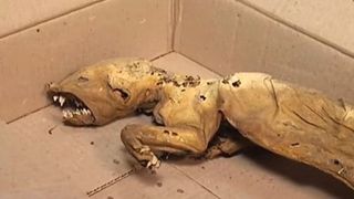 Oasele nu seamana cu ale niciunui animal cunoscut pana acum si localnicii cred ca ar fi vorba despre legendara Chupacabra. Corpul mumificat pare sa aiba mai multe randuri de colti, patru picioare, o coada lunga si ochii ovali si extrem de mici.