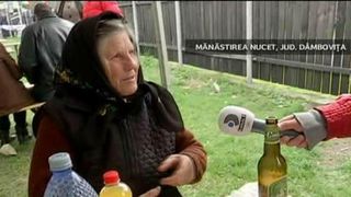 "Apa sfintita e foarte buna pentru bolnavi, schiopi, ologi, chiori orbi, de toate natiile e buna”, spune un barbat.