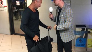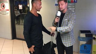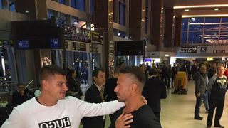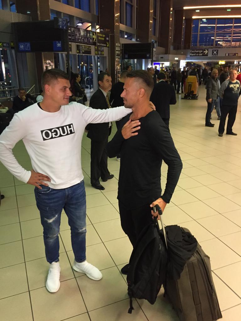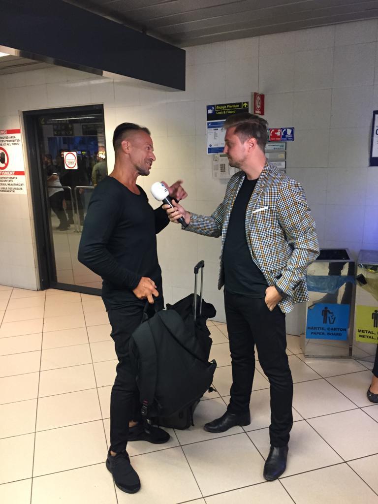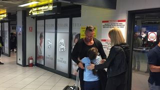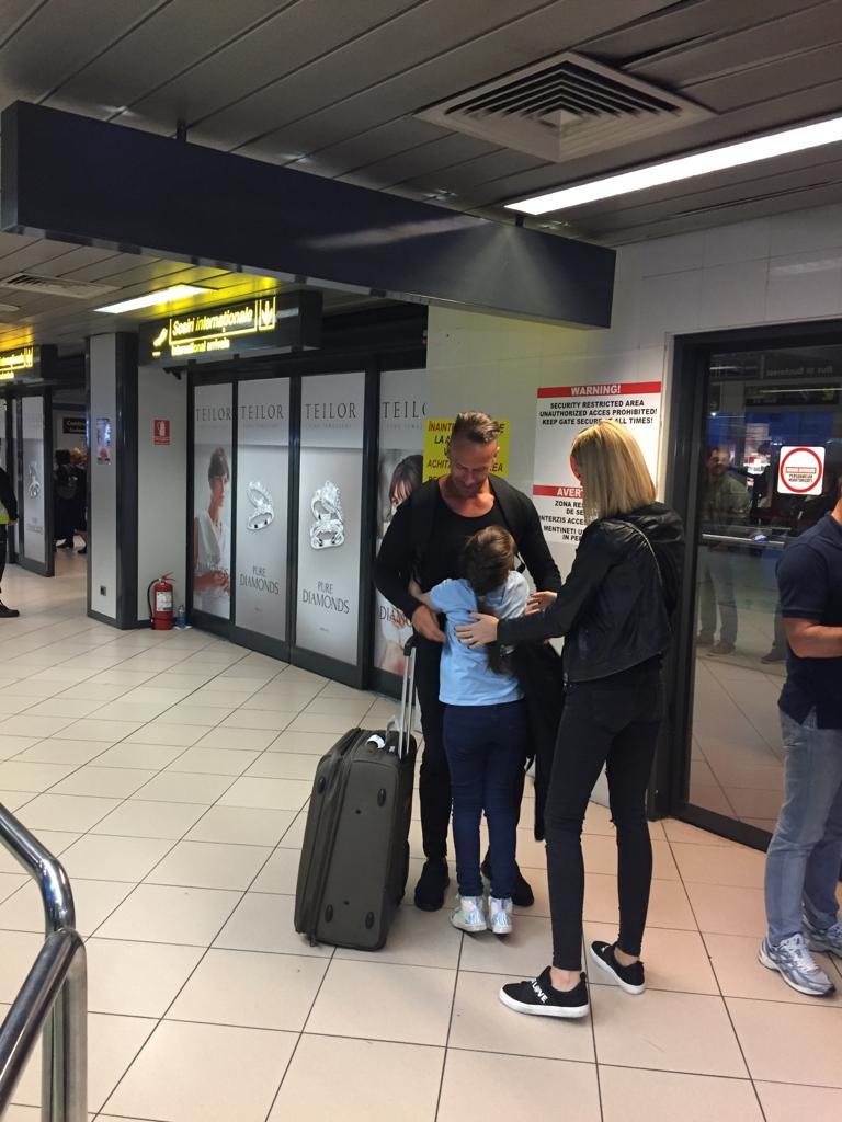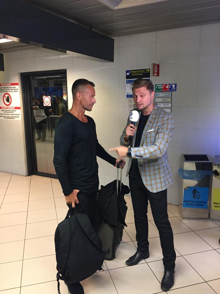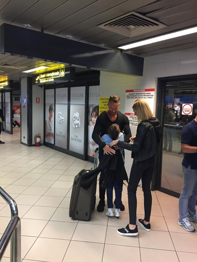 La aeroport a fost întâmpinat de soţie, de fiică, dar şi de un fost coleg, Adrian Blidaru.