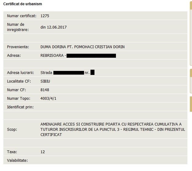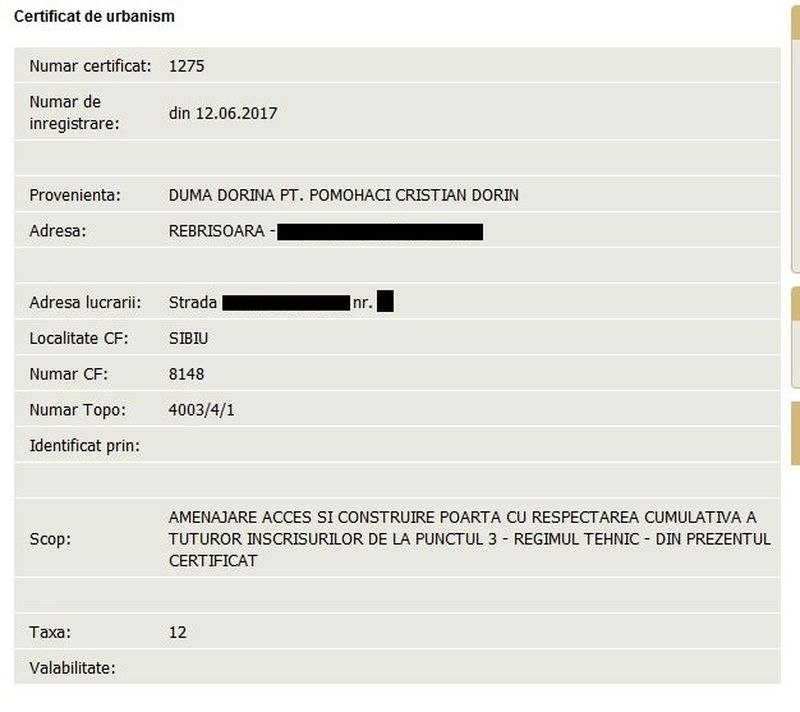 La putina vreme dupa ce a achizitionat imobilul, Pomohaci s-a apucat de renovat, dupa cum arata si avizul eliberat de Primaria Sibiu pe 12 iunie 2017 (cu doar 10 zile inainte sa