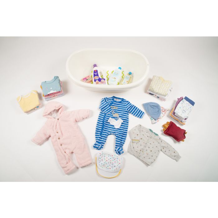 Bazat pe sfatul specialiștilor, pachetul de suport trebuie să conțină cel puțin următoarele produse de igienă: cădiță de îmbăiere, 1 săpun hipoalergenic, 1 gel de baie și șampon pentru bebeluși, 1 ulei de corp, 1 detergent gel concentrat pentru rufele nou-născuților.