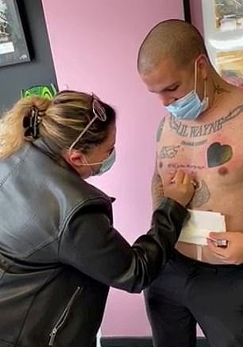 Un curier și-a cerut iubita în căsătorie într-un mod inedit: și-a tatuaj pe piept întrebarea „Te căsătorești cu mine?”