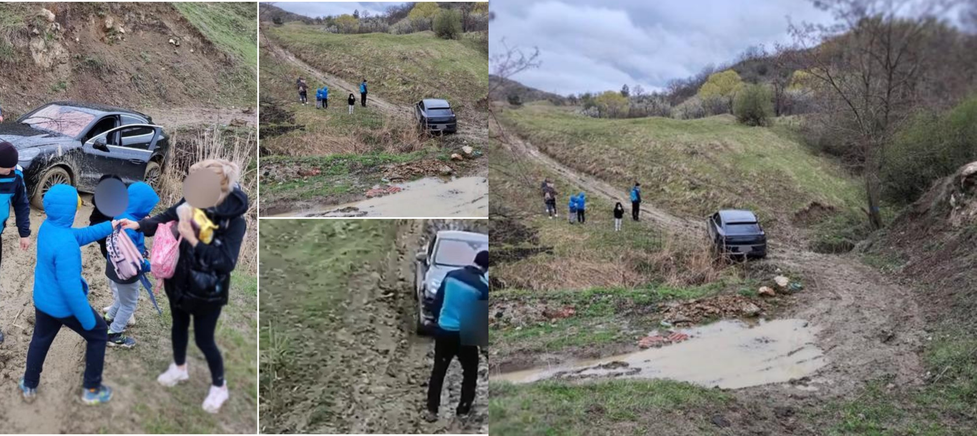 Un șofer de Porsche a rămas cu autoturismul blocat în noroi, pe un drum forestier din Buzău. Familia, cu trei copii, a fost salvată de jandarmi şi voluntari.