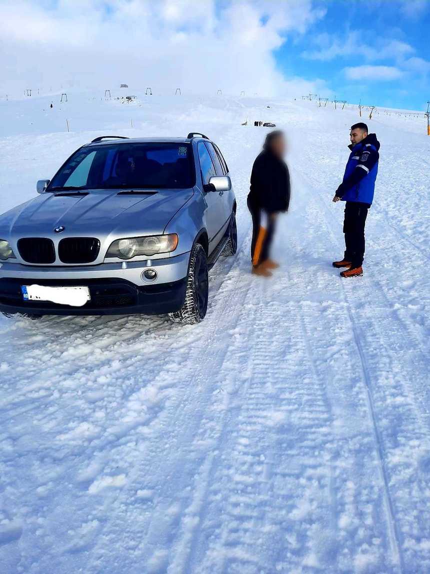 Cu SUV-urile pe pârtia de schi din stațiunea Muntele Mic. Doi bărbați, tată și fiu, au fost amendați