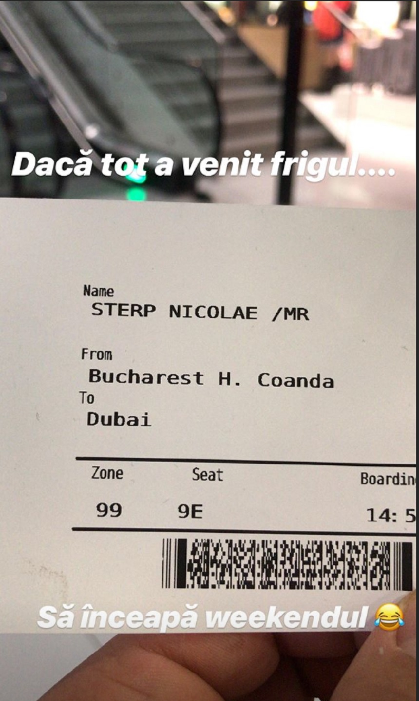 După ce Carmen a negat zvonurile potrivit cărăra s-ar fi despărțit de Culiță, acesta din urmă a publicat pe contul personal de Instagram o fotografie cu un bilet de avion către Dubai, acolo unde merge singur, cel mai probabil.