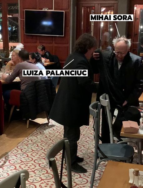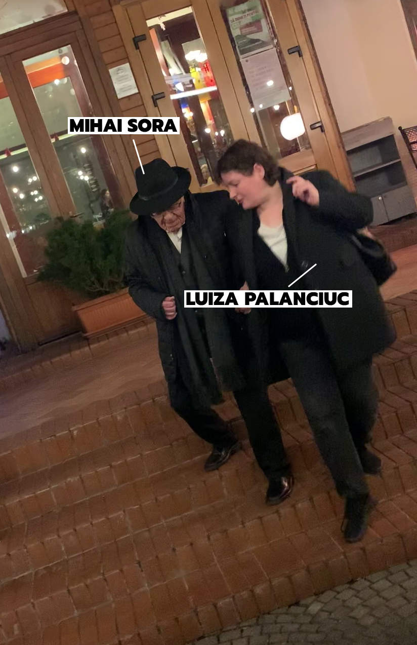 În timp ce luau masa la restaurant, Luiza Palanciuc nu și-a putut lua ochii de la Mihai Șora. A avut grijă ca vestimentația acestuia să fie pusă la punct, așa că i-a aranjat cămașa și l-a curățat de scame.