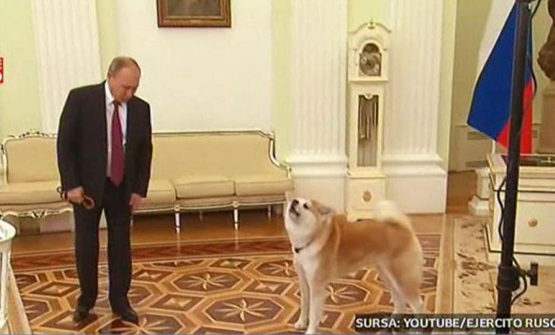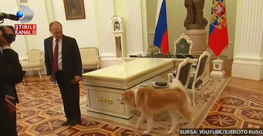 Yume, catelusa de 4 ani, este responsabila cu protocolul la intalnirile lui Vladimir Putin.