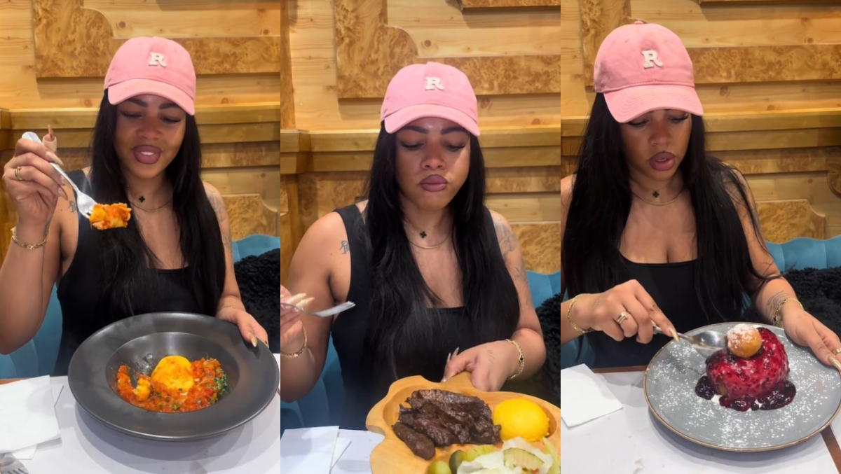 Meniul tinerei a început cu o salată de vinete, însoțită de o ceapă roșie și servită cu pâine prăjită. „Senzațională! Nu-mi pot reveni din cât de bună a fost”, a