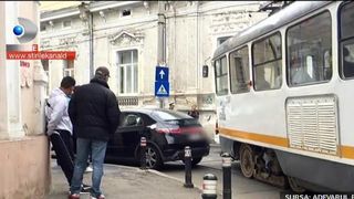 A fost nebunie mare in centrul capitalei. La doi pasi de Gara de Nord, s-a format o coada de tramvaie si masini... Cauza? O masina parcata cu roata din spate fix pe linia de tramvai.