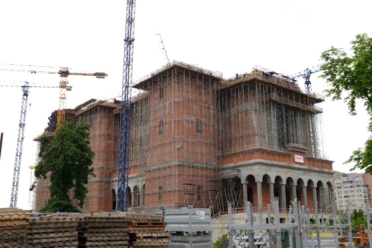 Santierul Catedralei Mantuirii Neamului este considerat cel mai mare din Romania, unde lucreaza in trei schimburi peste 300 de muncitori.