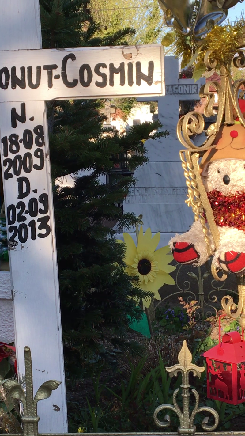 Mormantul copilului, din cimitirul Sfanta Vineri, arata ca un loc de joaca, o oaza vesela si colorata intr-un spatiu trist.