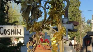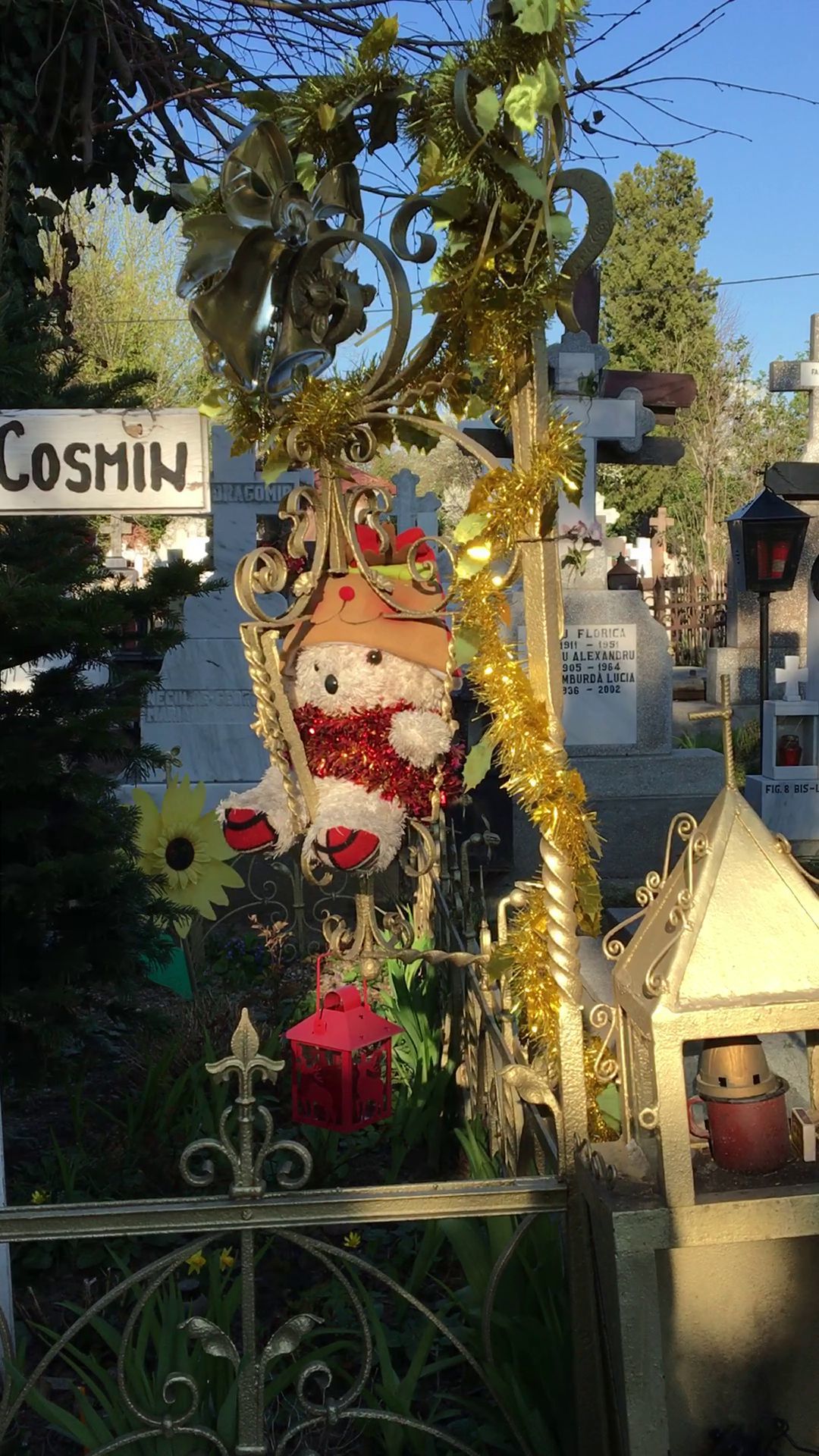 Un alt element care atrage atentia tuturor celor care se duc sa se reculeaga la cimitir este o floarea-soarelui de plastic care se invarte in bataia vantului.
