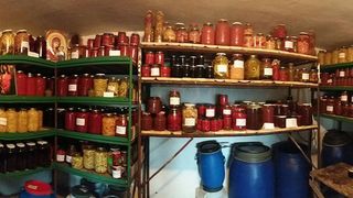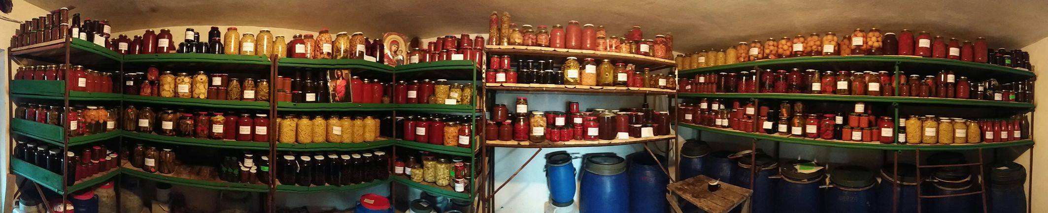 Pentru iarna, Parintele Efrem a inceput sa pregateasca zeci de borcane cu diverse legume, inca de acum cateva saptamani, iar zilele trecute, a fotografiat camara de la manastire, care este plina de fel de fel de borcane si butoiase.