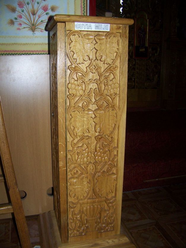 Intr-o biserica din orasul argesean stefanesti se afla cea mai mare cutie a milei din Romania. Are un metru jumatate inaltime si a fost amplasata acum cateva luni langa altar, in lacasul de cult ”Sfintii imparati Constantin si Elena”.