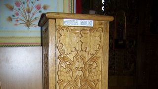 2 din 2 | Cum arata cea mai mare cutie a milei din Romania, care are un metru si jumatate inaltime. Preot paroh: „Legat de achizitia ei, nu cred ca este problema presei“