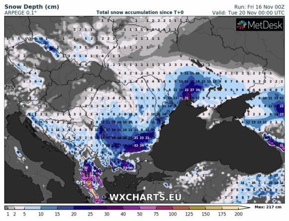Potrivit meterologilor, ninsorile vor continua în România, iar temperaturile se menţin scăzute, românii având parte şi de zăpadă. Conform specialiştilor, astăzi va ninge în continuare: ”Pe parcursul zilei de luni (19 noiembrie) în zona Carpaţilor Orientali şi în Moldova temporar va ninge în general moderat cantitativ şi se va depune strat de zăpadă local mai consistent.