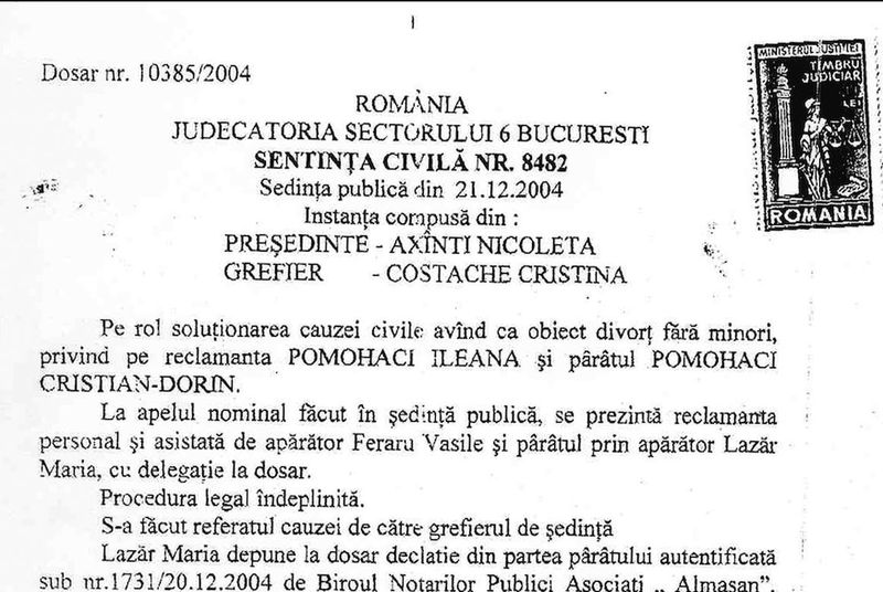 1 din 5 | Cum arata hotararea de divort a preotului Pomohaci, de acum 13 ani! Fosta sotie le-a spus judecatorilor ca barbatul nu si-a facut "datoria" fata de ea 3 ani