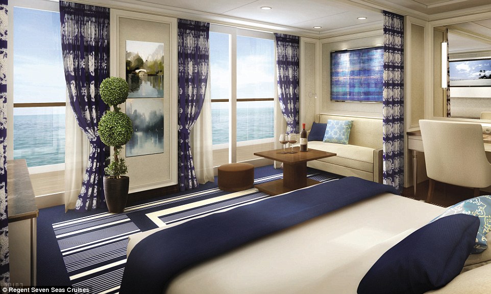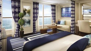 Apartamentul regal de pe aceasta nava are 4.443 de metri patrati, are doua dormitoare, un spa, un bar extrem de chic si multe alte facilitati.