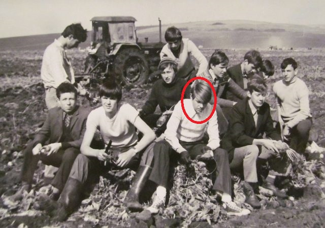 O fotografie din acea perioadă, de acum mai bine de 40 de ani, îl înfăţişează pe Iohannis pe un câmp, dezbrăcat, în timp ce se bronza, într-un moment de pauză într-o practică agricolă, probabil la cules de porumb. Într-o altă poză, Iohannis e înconjurat de colegi, tot pe câmp, la cules de varză, în spatele lor fiind un tractor.